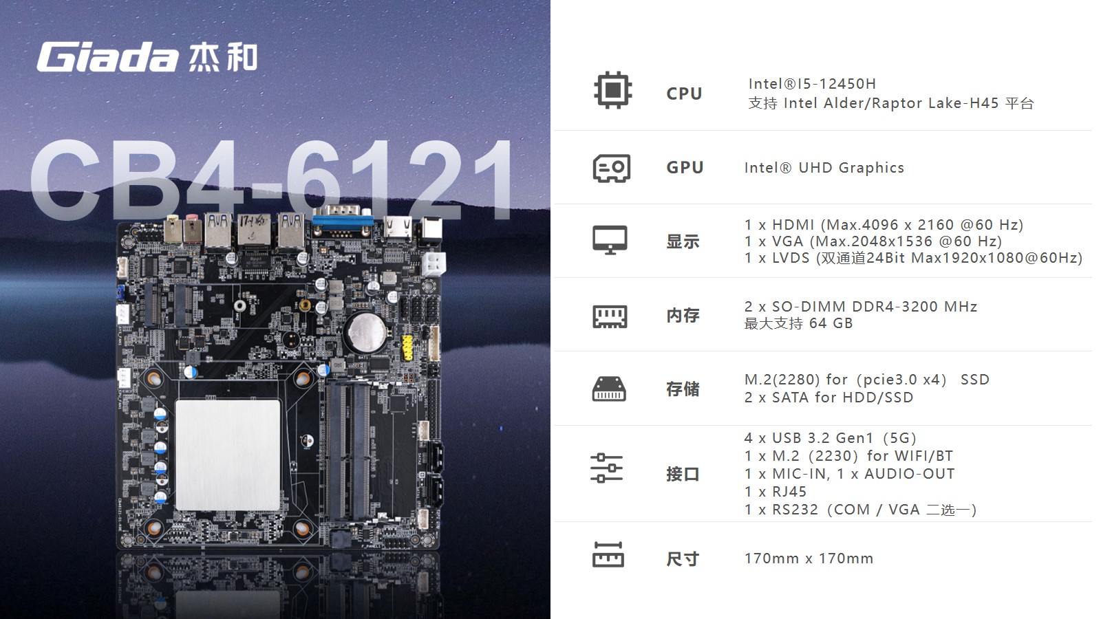 针对客户的办公及图形处理性能需求,k8凯发选用了搭载Intel 12代Core i5-12450H处理器的主板,该处理器支采用Intel 7制程工艺,8核12线程设计,最大加速功耗高达95W,以及12M高速缓存,能为用户提供超强的计算能力和响应速度。并且i5-12450H处理器自带的48个EU单元的UHD核芯显卡,可实现流畅的影音娱乐和高画质游戏体验。