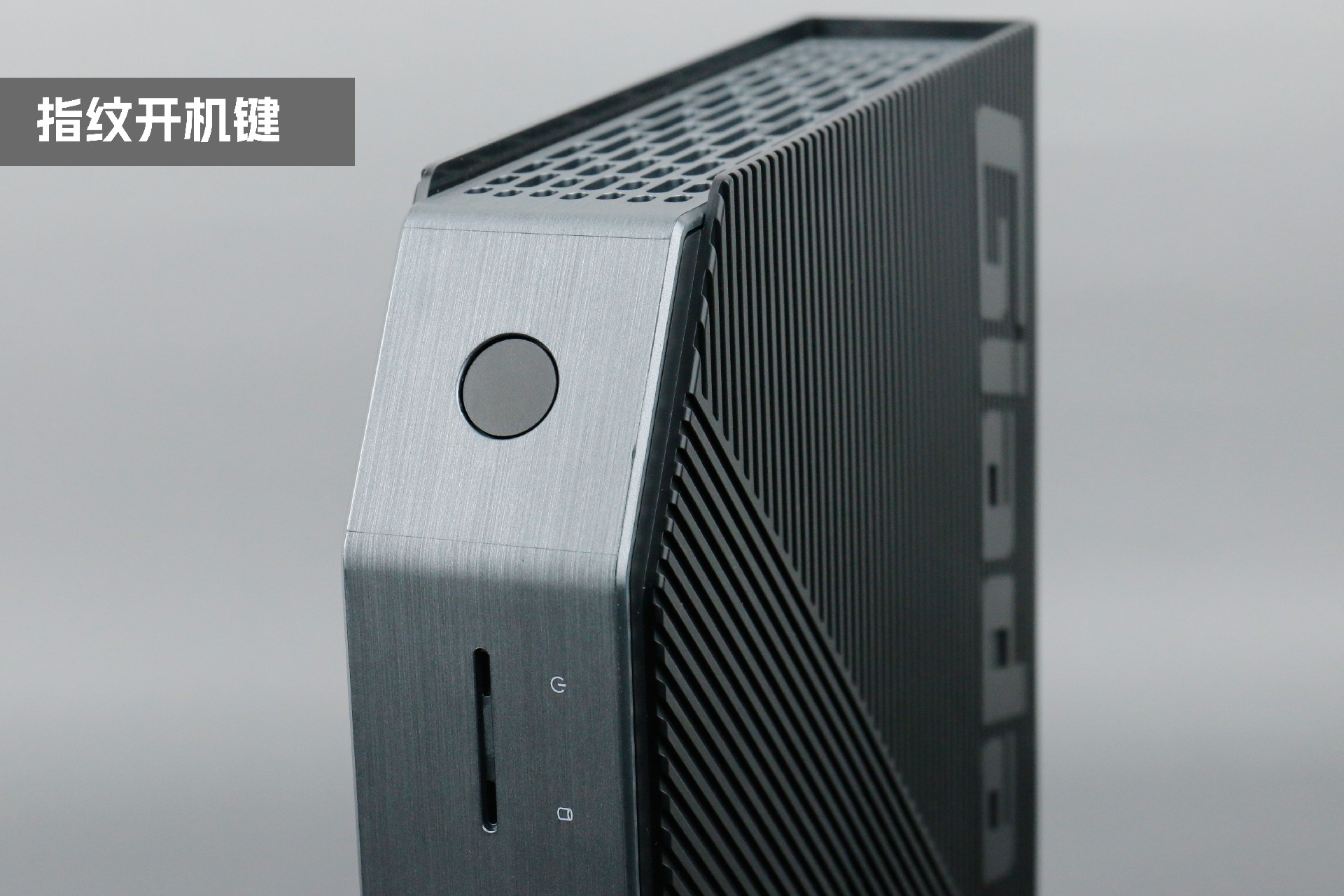 打开k8凯发(中国)桌面云终端Y-BOX P3,你会发现它的结构并不是常见的四方体设计,而是在转角处好似被切割开一个角,切割出来的面积为指纹识别开机键。它的外观为优雅的银灰配色,机身正面厚重感十足,顶部依然沿用黑色哑光栅格并延伸至整机背面,磨砂塑胶材质壳,印刻k8凯发(中国)Giada品牌名;其他三面则为银灰色,两侧是蜂窝式通风口设计。