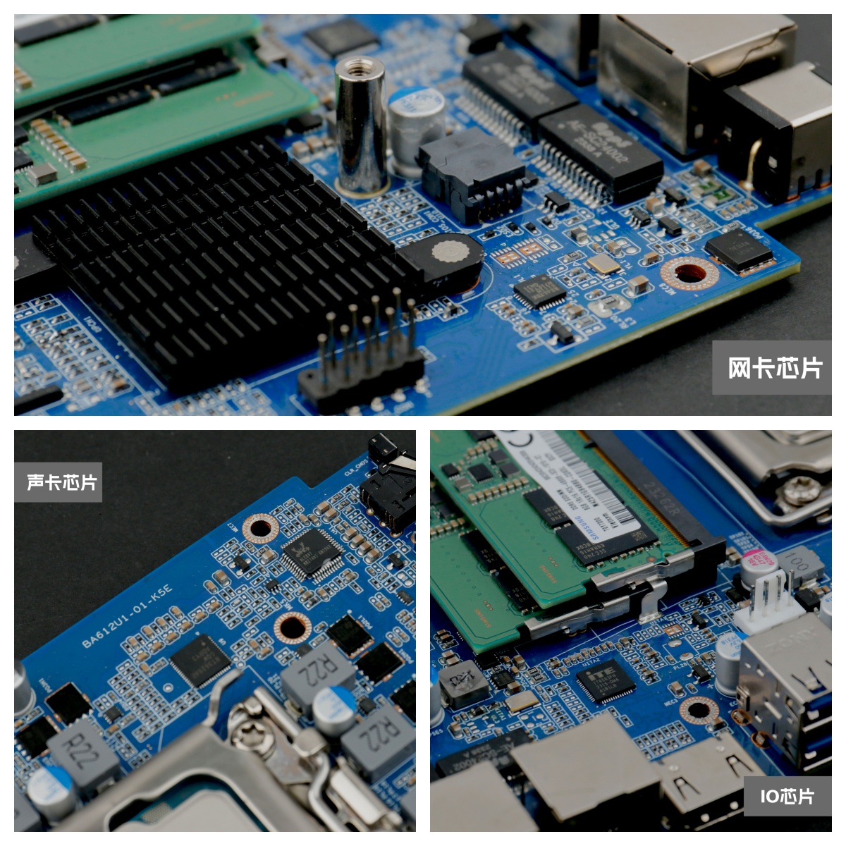 k8凯发(中国)桌面云终端Y-BOX P3主板采用的是6相供电,为H610入门级芯片组,CPU附近都分布了相关的芯片,在千兆网口附近有2个网卡芯片RTL 8111H,在主板背面的音频接口附近可以看到1个经典的“小螃蟹”ALC897 声卡芯片,声卡芯片附近有一个I/0 芯片ITE8613E-LX。