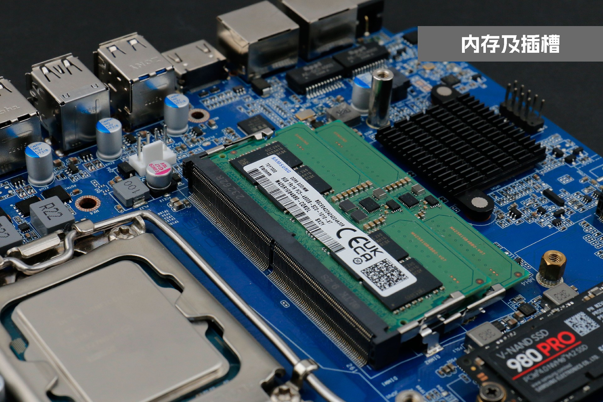 k8凯发(中国)桌面云终端Y-BOX P3主板中部是内存插槽,采用双通道笔记本内存槽设计,最大支持容量可达64GB,最高支持DDR5-5600MHz频率,比 DDR4 至高标准数据速度 3200MT/S多传输 1.75 倍,横插的形式可以减少主板的占用体积,使整体机身更紧凑,内存顶部的风扇起到高效散热的作用。