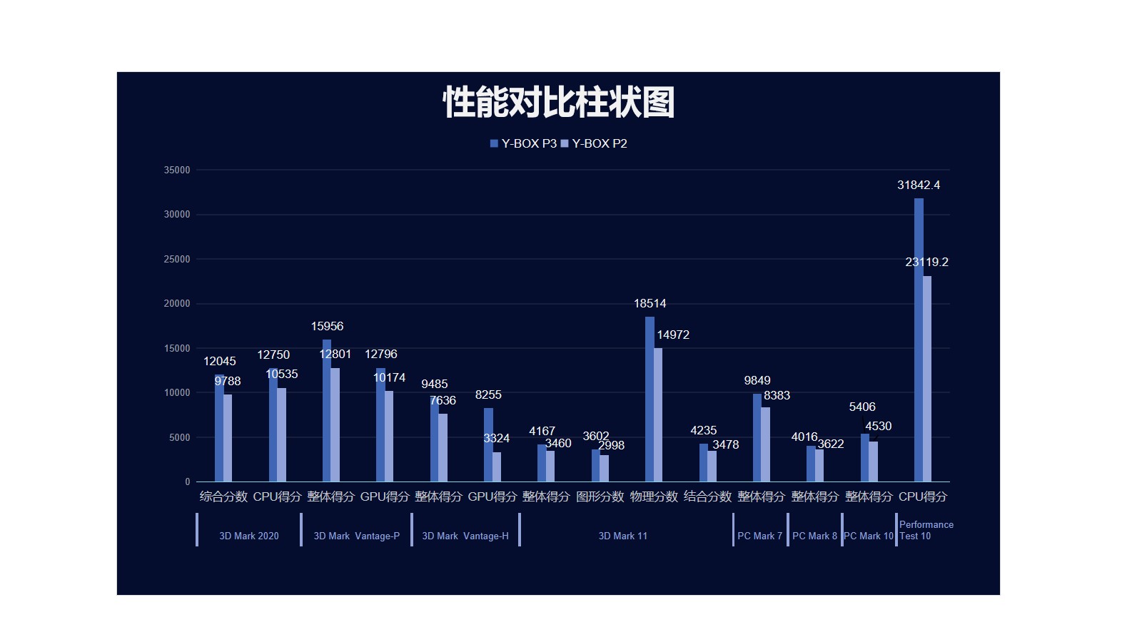 通过数据计算,Y-BOX P3比上一代Y-BOX P2的性能提升了20%,Y-BOX P3综合得分为5406、三个子项目的分数分别为10568/6605/6144,软件出品方提供的建议分数则是4100/4500/3450,证明对轻度办公来说,Y-BOX P3远超预期。