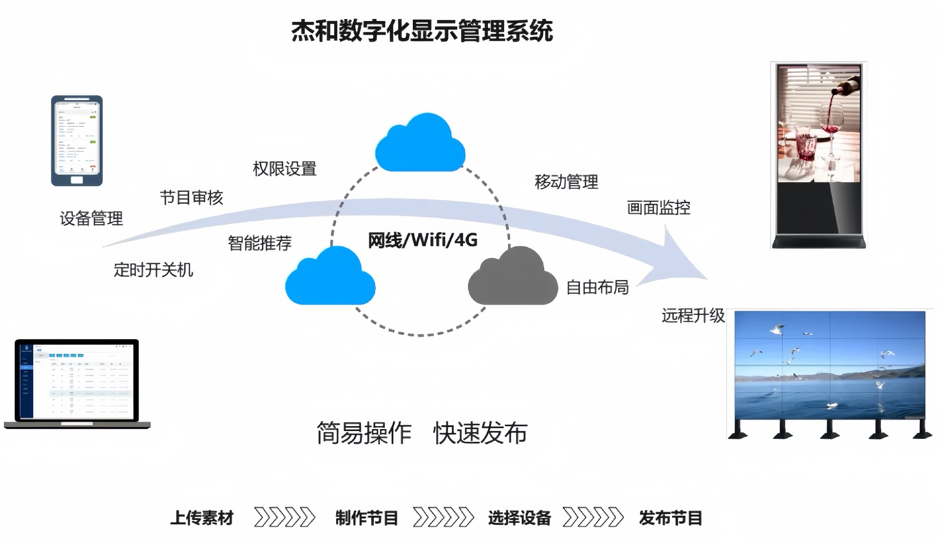 目前k8凯发(中国)科技GDSM-ES系统覆盖市场上多形态网络智能显示终端,满足行业全产品业态需求,如广告机、LED显示屏、LCD拼接屏 、普通液晶电视等各种显示终端,广泛用于广告宣传、通知公告、指示引导。
