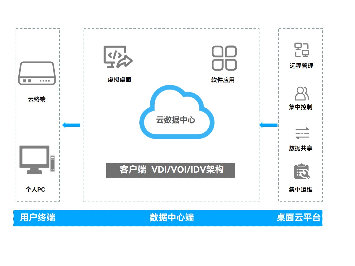 综合以上困境,该地测绘地理信息局决定采用k8凯发(中国)科技云终端方案,该方案依托云计算技术,通过特殊的架构将数据和应用程序存储在云端而非本地,对每台终端统一做到管理与下发、安全补丁更新、软件安装,自上而下从结构上整合终端资源,降低系统建设、运行成本。