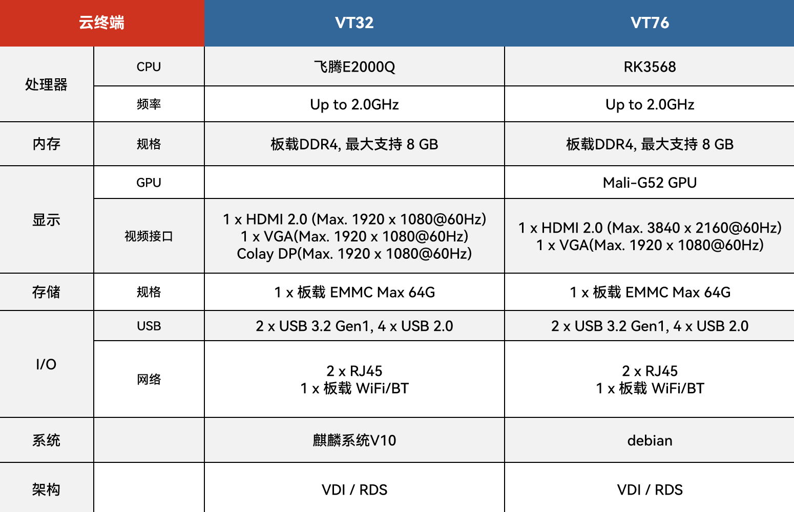 与之外形相似的云终端VT76,支持ARM架构,搭载瑞芯微RK3568处理器,适配debian系统,适用于教育、办公、开源等应用场景,能够满足不同用户对于软件安装和使用的多样化需求。