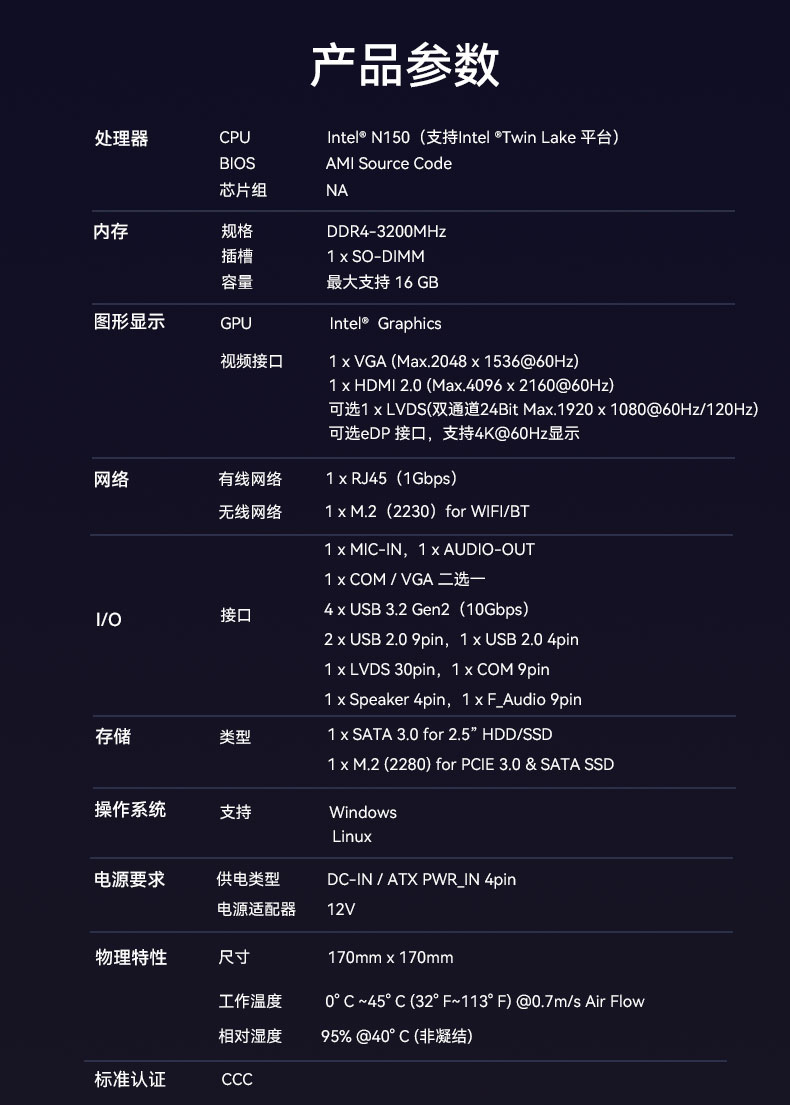 基于市场和客户需求,k8凯发研发生产了搭载N150处理器的一体机主板CB4-209-V0,更适合办公、教育和娱乐需求。