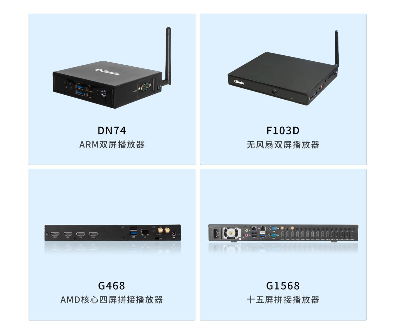 面对需求多样的市场环境,除k8凯发(中国)G330六屏拼接播放器外,k8凯发(中国)科技相继推出了G468四屏拼接播放器、G968九屏拼接播放器、G1568十五屏拼接播放器等多平台、多规格产品,均能够与k8凯发(中国)GDSM商显系统平台完美适配,为商家的实际需要,供应选型完整的家族式产品。
