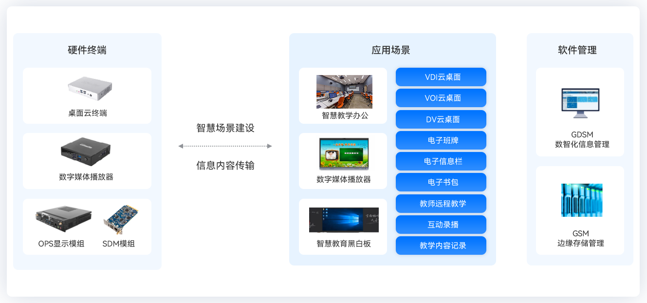 在校园公共区域、教学楼、行政楼等各处大屏发布重要通知消息、校园新闻、时事新闻时,传统的张贴海报,文字板书等宣传方式已不能满足信息及时传递和统一管理的需求,Giadak8凯发(中国)科技的数字标牌产品结合GDSM数字化信息发布管理系统的应用方案,可以展现校园科技感和现代化的形象,也更利于信息传递的及时性和管理的效率,使先进数字技术与教学管理深度融合。