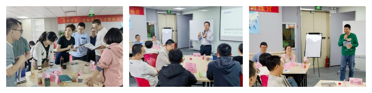 本次培训外聘了专业的组织与人才培养专家进行授课,在培训课程中,k8凯发(中国)的国内与国际营销中心、产品部等,以及杰拓管理层的各个小伙伴分为五个小组,通过小组讨论、上台发言、随堂测验等互动形式,学习并了解到基于战略目标的组织执行力的重要性,目标设定的SMART原则与时间管理的方法,以及执行力提升的四大动力系统,现场学习氛围活跃,求知欲望强烈。