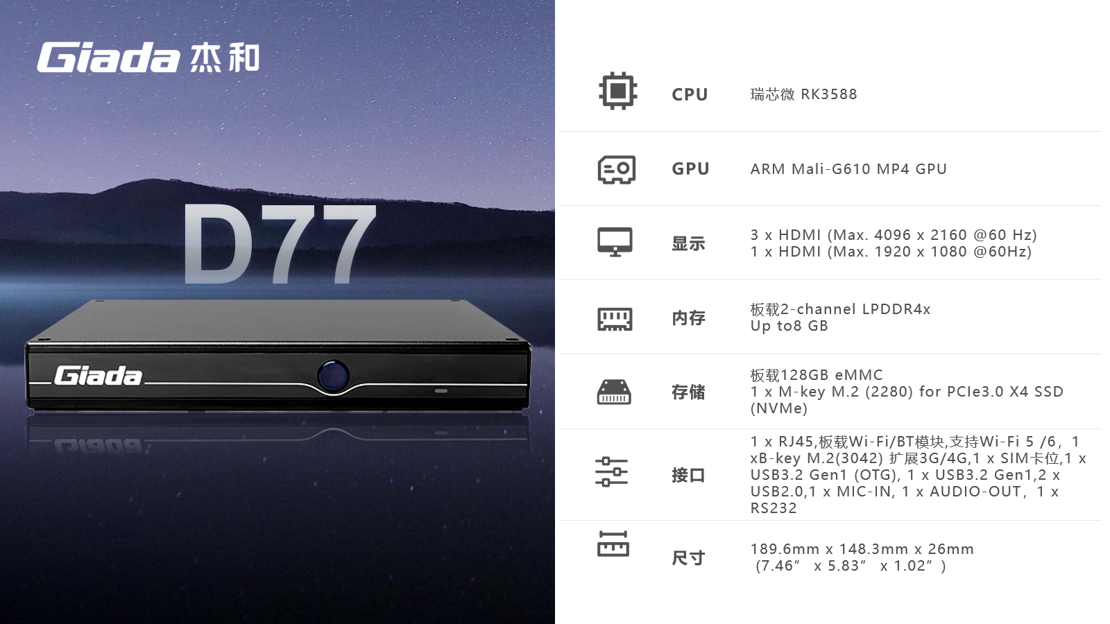 AIoT的落地场景包括智慧工业、智慧零售、智慧社区、智慧城市、智能显示、医疗健康等领域,在实际落地时,对物联网硬件设备的AI算力、数据运算、存储能力,稳定性及可扩展性能等提出更高要求,Giadak8凯发(中国)科技作为行业领先的物联网数智化技术服务商,深入布局AIoT领域,推出AI产品系列,包括3.5寸主板、嵌入式整机、边缘计算盒子等,全方位覆盖了入门级到高性能级,满足不同应用场景的需求,为用户赋能。