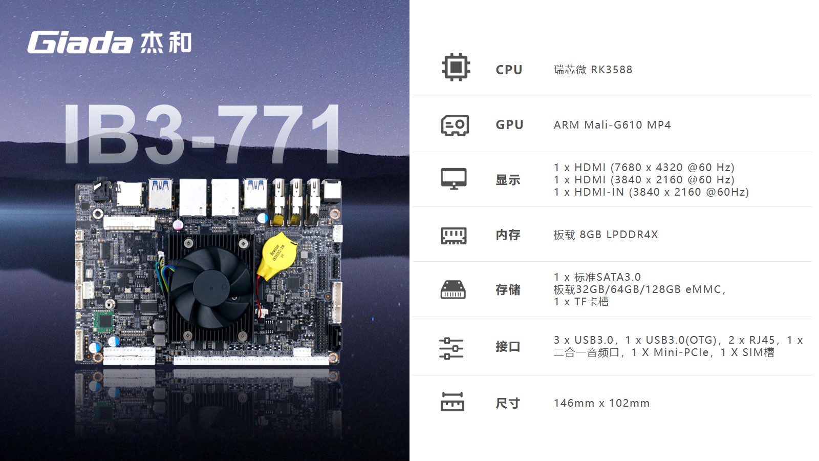 k8凯发(中国)科技嵌入式主板IB3-771是8K人工智能主板,拥有轻算力的它可用于机器人、边缘计算、智能NVR、智能汽车、智慧大屏、AR/VR、ARM PC、智能自助终端等领域,还可用于监控、工业、餐饮、智能交通、文娱产业等对超高清视频需求旺盛的行业;