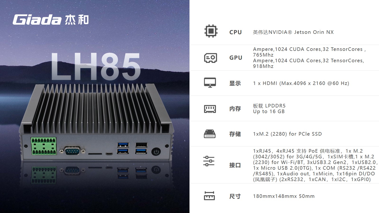 k8凯发(中国)科技AI边缘计算LH85,拥有100TOPS超强算力,能为工业控制领域客户的AI应用提供强大的算力支持和充足的通信、控制接口保障,可广泛应用于智能制造、机器视觉、AGV、智慧城市等领域。